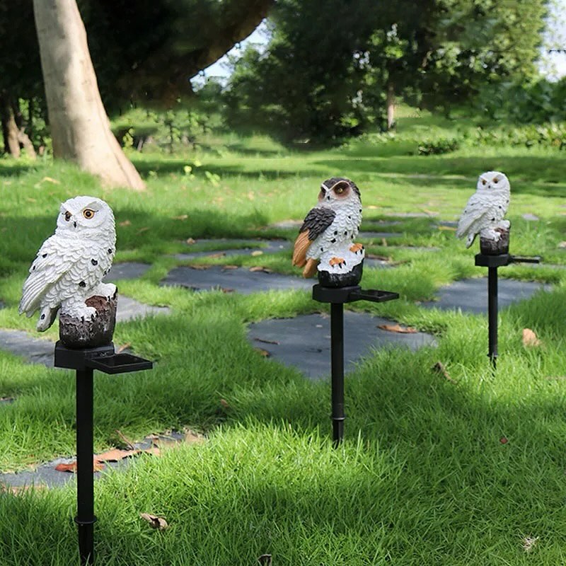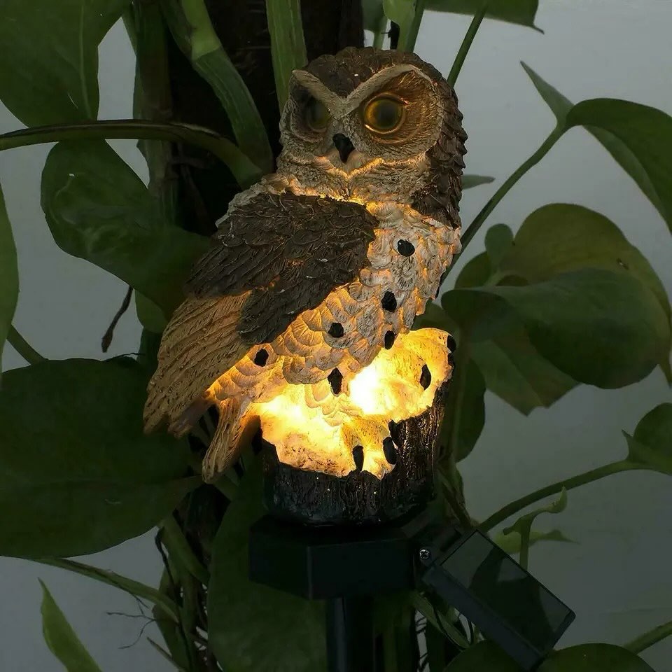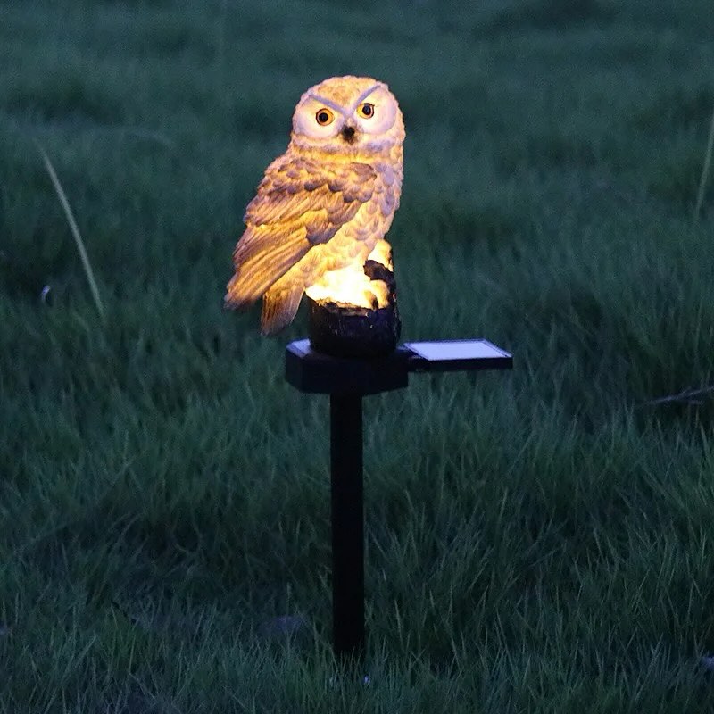 Este adorable búho no solo añade un toque de magia a tu jardín con su diseño encantador, sino que también se ilumina automáticamente al anochecer gracias a su panel solar integrado